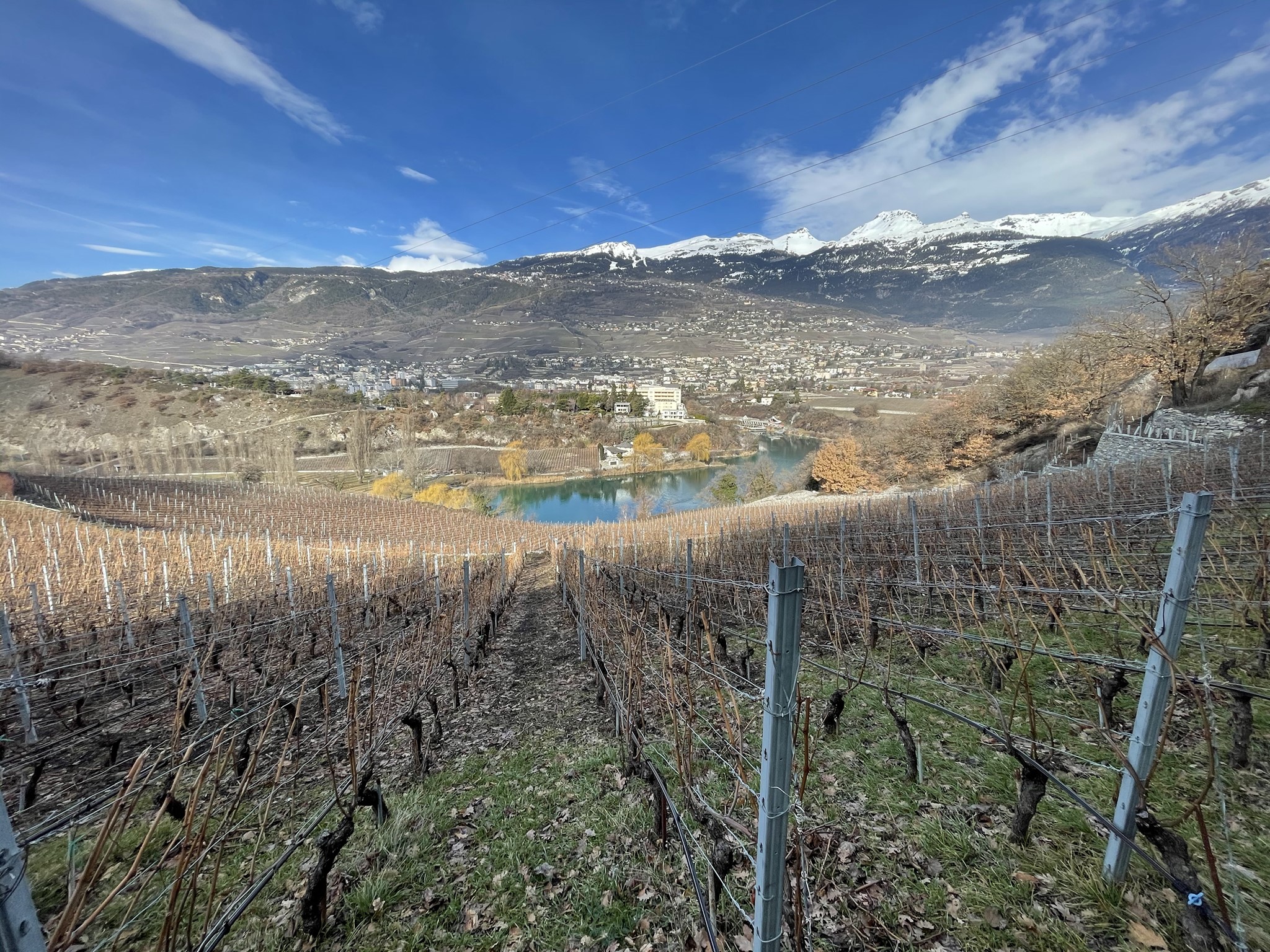 Pas moins de 15 cépages différents : Petite Arvine, Viognier, Chasselas, Marsanne, Pinot Gris, Humagne Blanc, Sylvaner, Muscat, Humagne Rouge, Pinot Noir, Merlot, Syrah, Cornalin, Gamay, Cabernet Franc, Cabernet Sauvignon.