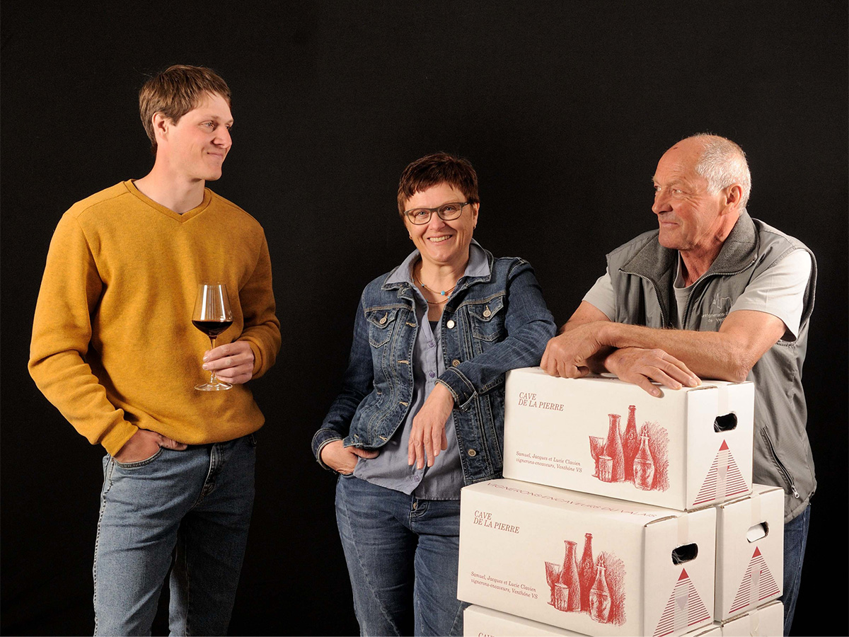 La Cave de la Pierre, fondée en 1974 par Jacques Clavien, se situe dans le quartier de la Pierre à l’est de Venthône, village médiéval et vigneron situé à 800 mètres d’altitude, sur la rive droite du Rhône, entre Sierre et Crans-Montana.