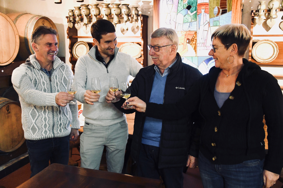 Aujourd’hui, la pérennité de la cave est assurée avec les troisième et quatrième générations. Jean-Gabriel, fils de Jean-Pierre, s’occupe de la partie viticole, Pascale, la fille, quant à elle a pris la relève dans le secteur administratif et vente. Quant au secteur vinification et cave, ce dernier est sous la responsabilité de Mathias, fils de Jean-Gabriel.